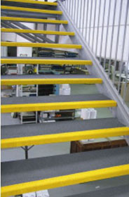 樓梯踏步采用高強(qiáng)玻璃鋼格柵,前緣制作不同顏色的防滑表面封閉條,產(chǎn)品可以固定在拉擠型材等及其他材質(zhì)的樓梯結(jié)構(gòu)上作為臺(tái)階。產(chǎn)品防滑,絕緣質(zhì)輕,安裝方便,在所有的工業(yè)環(huán)境作為安全防護(hù)使用效果良好。